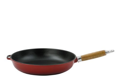 World Cuisine A1733030 11 Inch Red-Black Frying Pan with Wooden Handle Feature